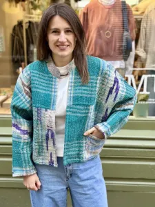 Classic Antic Jacket van By Bar. One-of-a-kind statement jasje met een verhaal. Een unieke toevoeging aan je garderobe, gemaakt van upcycled katoenen sari’s die gedragen zijn door Indiase vrouwen. Deze sari’s worden na gebruik tot dekens verwerkt, waarna ze een nieuw leven krijgen als stijlvolle en bewuste jackets. Het jasje heeft een ronde hals, geen sluiting en twee zakken voorop. De mouwen vallen 3/4 lengte. Verwijder het kaartje en het jasje is ook reversibel. Handgemaakt en circulair.