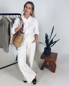 Emmy Pants in olijf groen van Another Label. Deze pantalon heeft een stijlvolle fit en valt lang. De pijp valt wijd en geeft deze pantalon een moderne look. Het elastiek achterin de band zorgt voor een perfecte fit voor verschillende lichaamstypen. De broek heeft fijne zijzakken. Deze pantalon draag je gemakkelijk in verschillende stijlen, zowel klassiek als modern. De broek valt groter, bij twijfel adviseren we een maat kleiner. De broek valt ook lekker lang! Bij vragen, app ons of kom langs in onze winkel. Merel is 1.78 m en draagt maat XL.