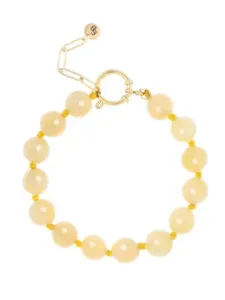 Gemstone armband in geel van Ellen Beekmans. Creëer een stralende geelgouden look met deze armband. De ronde gemstones hebben een diameter van 1 cm. Met mooie gouden accenten, een rond slot en een verlengkettinkje van rechthoek schakels. Handgemaakt, elegant en tijdloos. Vragen? App ons gerust of kom langs in onze winkel in Utrecht.