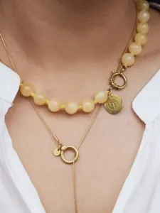 Gemstone ketting in blauw van Ellen Beekmans. Een korte ketting met prachtige blauwe gemstones. Door de variatie in blauwtinten en vorm van de gemstones is elke ketting uniek. De ketting heeft een lengte van 18 inch (45 cm) en de gemstones hebben een afmeting van circa 0.7 x 0.9 cm. Verguld op long-lasting stainless steel. Vragen? App ons gerust of kom langs in onze winkel in Utrecht.