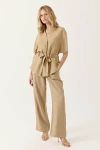 Henrika pantalon van MSCH in het zwart. Deze broek is high waist en heeft een bandplooi. Hij valt lang en wijd. Met dit model adviseren wij je eigen maat of een maat groter. Heb je hulp nodig met jouw maat? App ons of kom langs! Monique draagt een S, Merel XL.