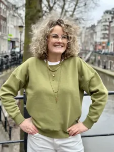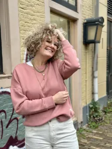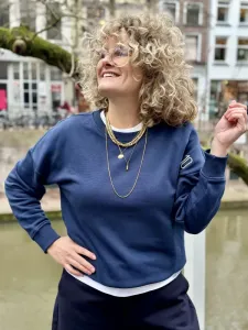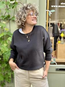 5 jaar MUS, deze trui hebben we daar speciaal voor gemaakt. Fijne rood/oranje Juul sweat van MUS CPT met heerlijk zachte binnenkant. De trui heeft een mooie hals die niet te hoog zit met brede boord. Leuk detail is het splitje aan de zijkant. Iedere collectie heeft een cijfer bij de oksel, dit is collectie nummer 8. Deze trui heeft als enige een musje op de mouw. De trui valt op maat en heeft een oversized look. Draag hem stoer op je jeans of gave rok. Maar ook leuk voor over een jurk. Mix & match alle kanten op. Er zijn meerdere kleuren verkrijgbaar van de Juul sweat. Monique draagt maat S, Karen & Merel een L.