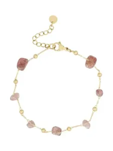 Vergulde ketting met balletjes met een gemstone hanger in warm roze De afmetingen van de hanger zijn 1.3 x 1.5 cm. De lengte van de ketting is 20 inch (50cm). Verguld op longlasting stainless steel.