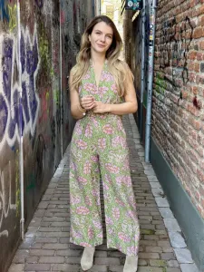 Kunis Jumpsuit in warm bruin van Atelier Reve. Deze jumpsuit is een prachtige toevoeging aan jouw garderobe. Elegante pasvorm, zachte stof en tijdloze look voor elke gelegenheid. Hij heeft een kraag en sluit met zilveren knoopjes. De elastische band en omgeslagen kapmouwen zorgen voor verfijnde details. Draag hem solo of voeg een mooie blouse toe op koude dagen. Twijfel je over de maat? App ons gerust of kom langs in onze winkel. Faye draagt maat M.
