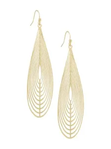 Lange oorbellen van Ellen Beekmans. Deze licht gewicht oorbellen met 2 mat gouden opengewerkte hangers zijn een unieke accessoire. De lengte van deze oorhangers is 7 cm en de breedte is 3.5cm.