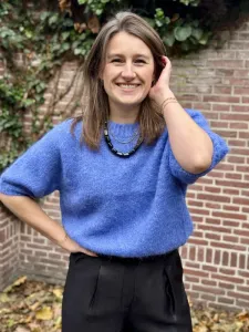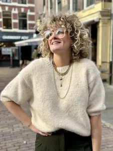 Lycie Trui in het grijs van Artlove. De Artlove favoriet is terug, dit seizoen in nieuwe kleuren. Deze trui met halflange mouwen heeft een wat korter, vlot model. Het heeft geribbelde randen en is gemaakt van een brei mix. Draag op een jeans of netjes met een pantalon. Twijfel je over de maat? App ons gerust of kom langs in onze winkel. Merel draagt XL.