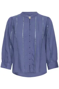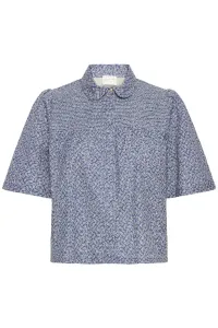 Minor Shirt in creme met blauw van Atelier Reve. Een katoenen vestje van open gehaakt patroon. Het heeft een ronde hals en sluit met knoopjes. Het ruit patroon en korte mouwen maken dit een veelzijdig item. Twijfel je over de maat? App ons gerust of kom langs in onze winkel.