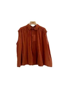 Naika Top in lila van FRNCH. Deze wijde mouwloze blouse is gemaakt van luchtige zwierige stof. De plooien bij de schouders en over de rug accenturen het ontwerp. Het heeft een kraagje en sluit met knoopjes. Draag met een bh of hemdje eronder. Twijfel je over de maat? App ons gerust of kom langs in onze winkel in Utrecht.
