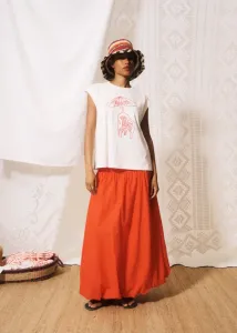 Nunzio Top in rood van FRNCH. Een luchtige, mouwloze rode blouse met een speels bloesend effect en een comfortabele, ruimvallende pasvorm. De blouse heeft een ronde hals en knoopsluiting aan de voorkant. Een perfecte, elegante top voor de warmere dagen, zowel casual als chic te dragen. Combineer met een jeans, shorts of rok. Twijfel je over jouw maat? App ons gerust of kom langs in onze winkel in Utrecht.