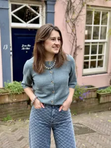 Sienne High Waist jeans in denim blauw met print van Minus. Deze toffe barrel jeans is zowel stoer door het model als stijlvol door het patroon. De broek valt hoog en strak in de taille en de pijpen vallen wijd in een ballon model die smaller toelopen naar de enkel. Hij sluit met rits en knoop en heeft zakken. Combineer met een vest of trui, of draag als set met het Sienne Shirt. Twijfel je over de maat? App ons gerust of kom langs in onze winkel. Monique is 1.68 m en draagt XS, Merel is 1,78 m en draagt XL.