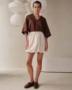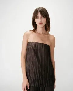 De Valley top van Grace & Mila in het bruin. Deze mouwloze top heeft strakke, minimalistische lijnen die een modern silhouet creëren. De aansluitende pasvorm wordt versterkt door een asymmetrische draperie bij de taille en schouder, wat een verfijnde beweging geeft. De gedrapeerde top accentueert op elegante wijze de vrouwelijke rondingen. Twijfel je over jouw maat? App ons gerust of breng een bezoek aan onze winkel in Utrecht.