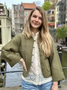 Vendel overhemd van Grace & Mila in het creme. Dit rechte overhemd is gemaakt van bloemenkant, wat zorgt voor een verfijnd en vrouwelijk silhouet. De driekwart mouwen en de klassieke kraag geven het een tijdloze elegantie. De lichte en soepele stof van dit kanten overhemd zorgt voor een luchtige en elegante uitstraling. Twijfel je over jouw maat? App ons gerust of breng een bezoek aan onze winkel in Utrecht. Faye draagt een XS.